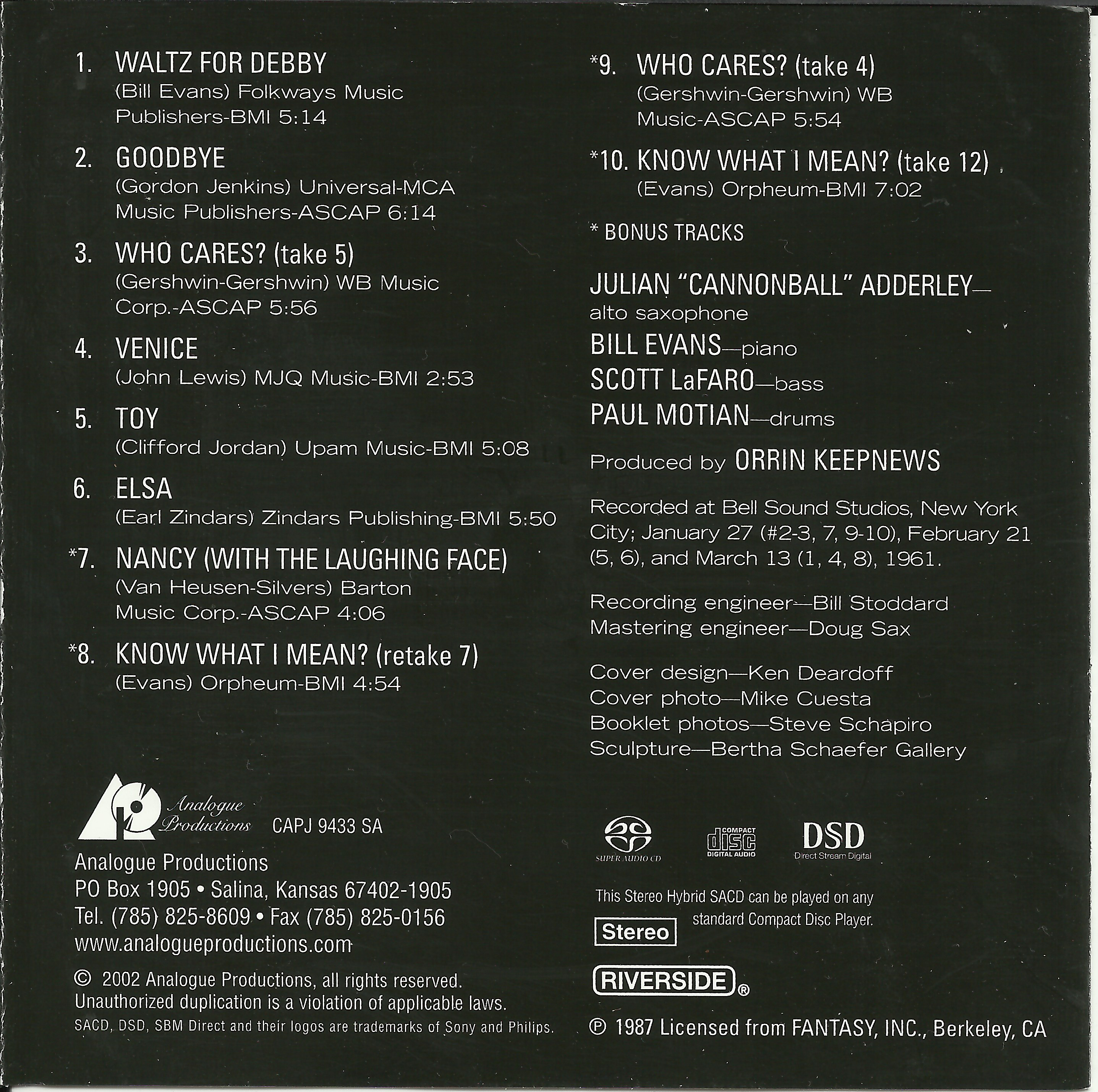 - 01-10. Cannonball Adderly, Bill Evans, Scott LaFaro, Paul Motian - Know What I Mean (take 12).dff